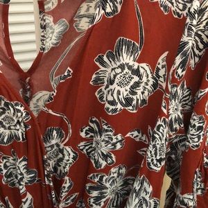 Colorful romper from Target. Worn once. Tie around the waist. Sleeves go to above the elbow. Snap closure in the front for optional deep V.
