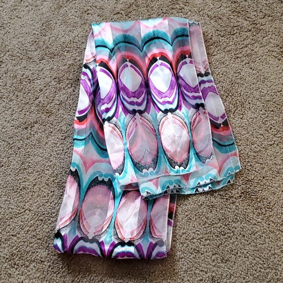 Light-weight pink, aqua, and purple scarf. Lightly used. No tears, holes, stains, or pilling.
