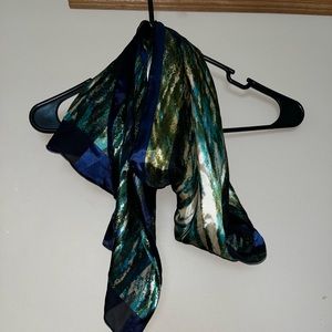 100% polyester scarf, thin material, perfect for spring days. NEVER worn