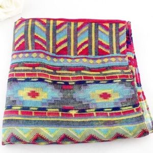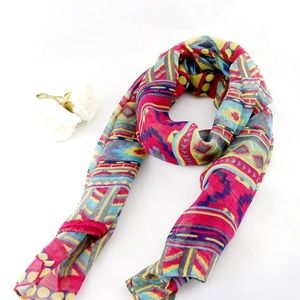 Colorful scarf with geometric pattern.