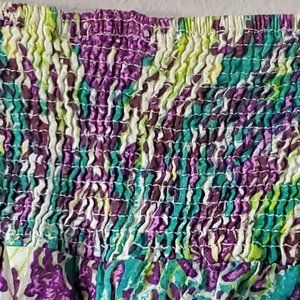 Color: Purple, light green, Dak teal, white, cream, yellow