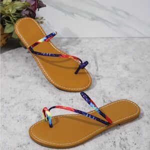 Women's Colorful Band Toe Loop Slides, Lightweight Slip On Summer Flats, Casual Slides