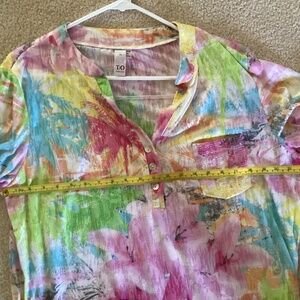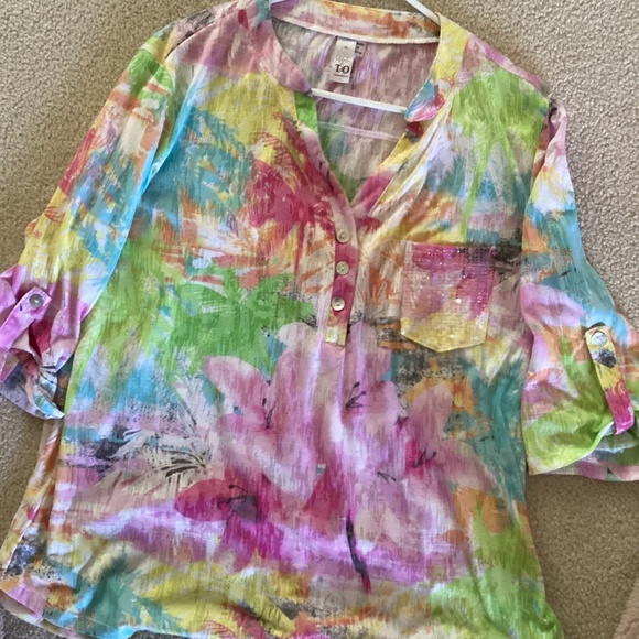 TO brand very pretty colorful top xl. Roll up tab sleeves with sequin pocket in front.