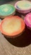 Set of 4 round watercolor paintings. 4” glittery and shiny canvases.