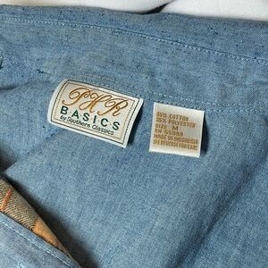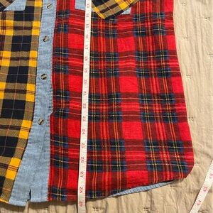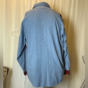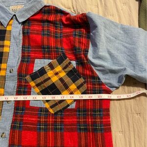 Plaids are flannel on a blue chambray shirt. Super unique and perfect for fall and winter.