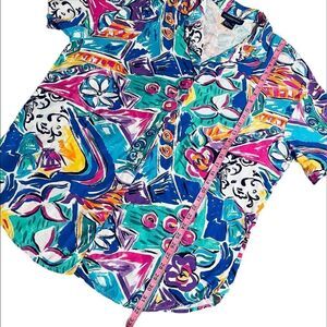 Vintage Colorful Abstract Pattern Short sleeve button down shirt from Counterparts. In lightweight cool rayon fabric in great condition.