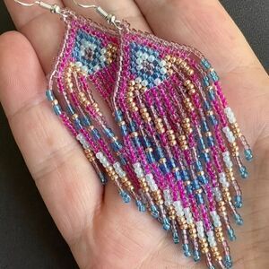 - Handmade Beaded Long Fringe Dangle Earrings.