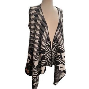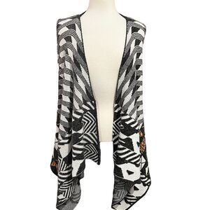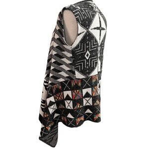 Colorful Bohemian Coatigan Cardigan Sleeveles Black & White size Medium