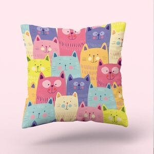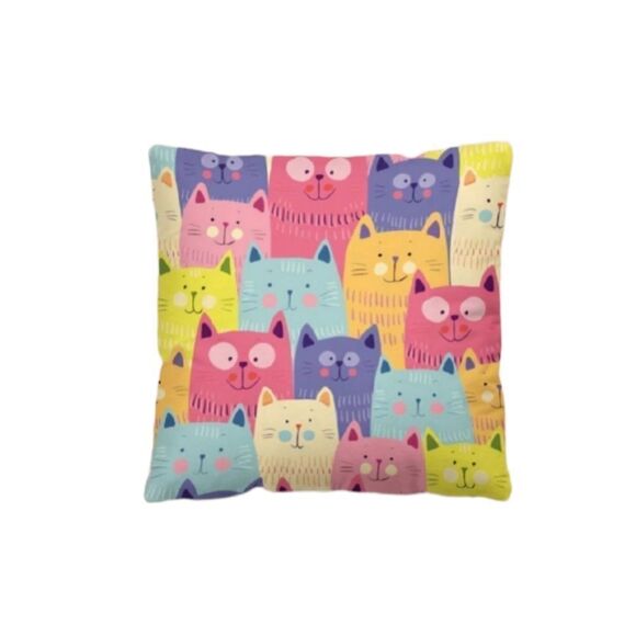 New! Multicolor cartoon cat pillow cover. Zippered closure. Approximately 17.7x17.7". Pillow not included. Bundle to get a discount.