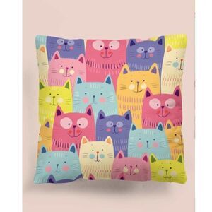 Colorful Cartoon Cat 🐱 Pillow Cover