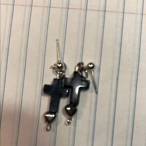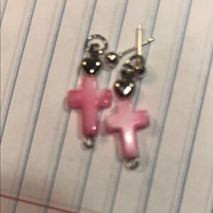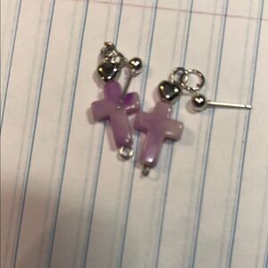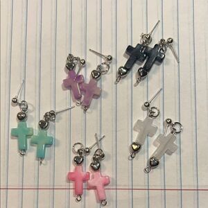 Add a pop of color to your outfit with these cross earrings. Featuring vibrant shades of pink, purple, green, black, and white, these earrings are perfect for any occasion.