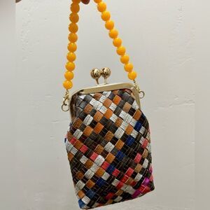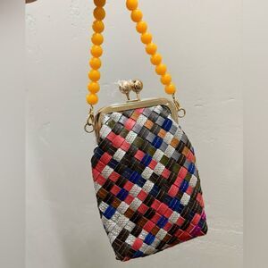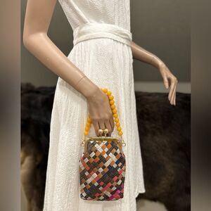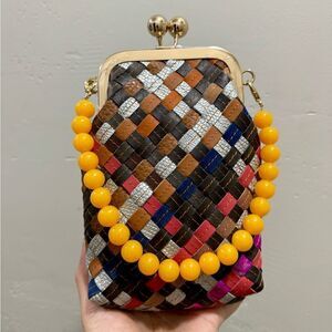 Colorful Handmade Genuine Woven Leather Kisslock Clutch/Phone Pouch/ Crossbody