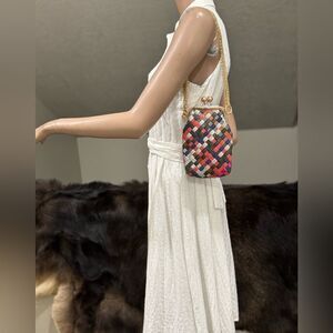 Chic design. One of a kind. Handmade from genuine woven leather with colorful plaid, both sides are beautiful. Spacious enough for your phones, wallet, cosmetics, passport, reading glasses, sunglasses, coins, keys, credit cards & other items.