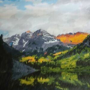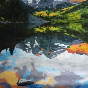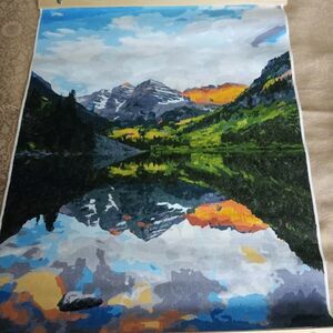 Colorful Paint By Number Completed Canvas Acrylic PBN 16x21 Art Mountains Lake
