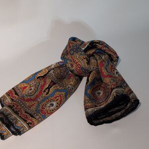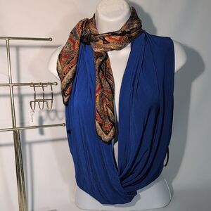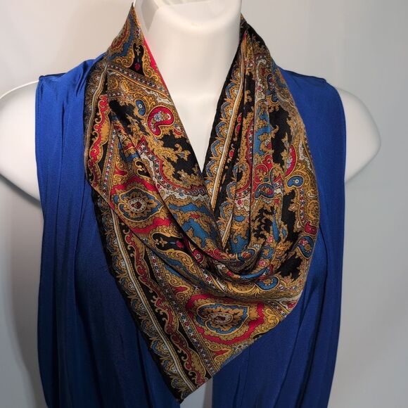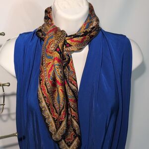 Enhance your style with this elegant blue scarf featuring a vibrant paisley design. Perfect for adding a touch of sophistication to any outfit.
