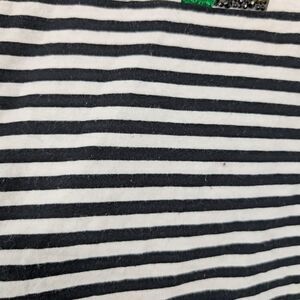 Striped T-shirt with colorful sequin design. Features black and white stripes with vibrant sequins.