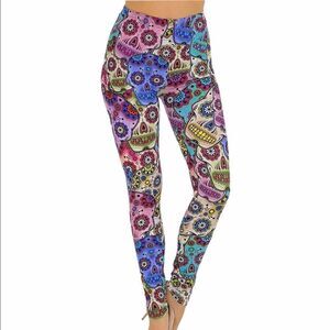 Colorful Skulls Mid Rise Leggings Pants NEW