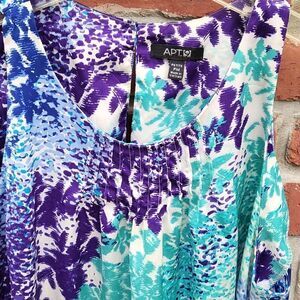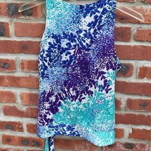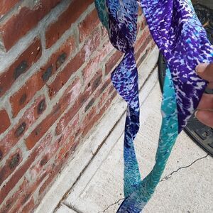Beautiful colors of turquoise, blue and purple. side tie. Back button closures 100% polyester