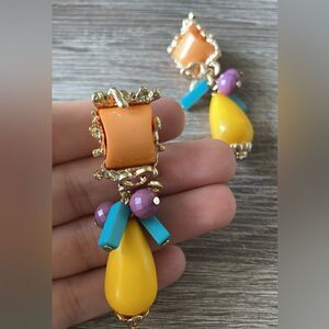 Colorful statement yellow color detail clip on earrings in gold hardware