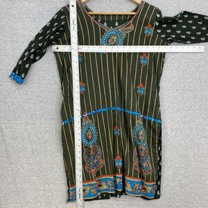 Colorfull Tunic Top Womens Large Green Multicolored 3/4 Sleeve Split Sides