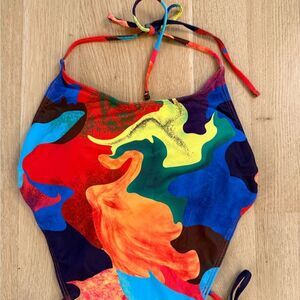 Bright and colorful sexy one piece bathing suit from shein in a size large. Has a really high waisted cut that shows off the hips and multiple ties making this pretty adjustable. Never before worn, brand new.