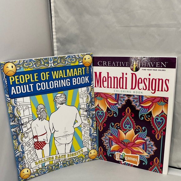 Explore your creativity with the Mehndi Designs Coloring Book and People of WalMart Coloring Book. Featuring intricate patterns, these books are perfect for relaxation and artistic expression. The vibrant cover design adds a touch of color to your collection. Brand new!