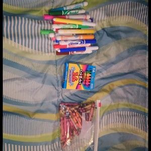 I have markers crayons and colored pencils I need to get rid of.i know many have children. I didn't want to throw them away. I will accept all reasonable offers and I will even include my listed adult coloring books also.