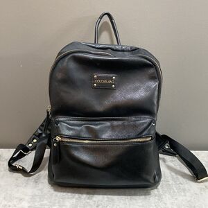 Colorland Black Faux Leather with Bright Red Interior Backpack Medium