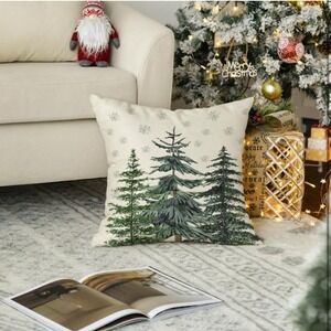 Colorlife Christmas Trees Snowflake Throw Pillow Cover, 16 x 16 Inch Winter Holi