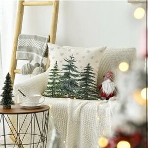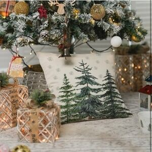 New Colorlife Christmas Trees Snowflake Throw Pillow Cover, 16 x 16 Inch Winter Holiday Cushion Case Decoration for Sofa Couch