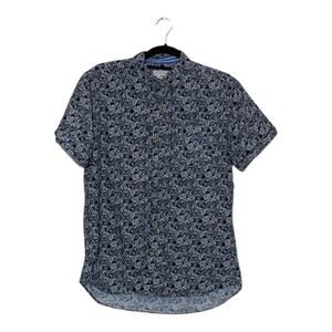 Colors Alexander Julian men short sleeves black palms print casual shirt size M