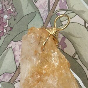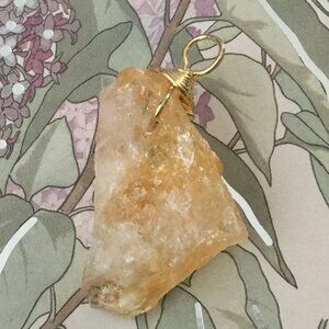 Colors of Brazil Citrine Rough Cut Wire Wrapped Pendant NEW