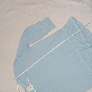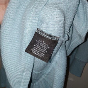 Colortree Blue Longsleeve Vneck Waffle Knit Ruffle Bottom Top size L