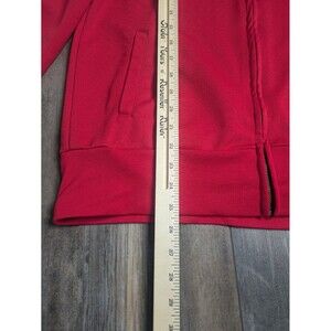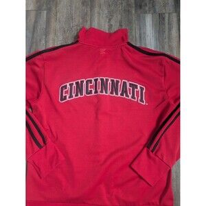 The product is a Cincinnati Bearcats track jacket in size medium for men. It is red in color with the team's logo embroidered on the front. The jacket features a full zip design, making it easy to put on and take off. Perfect for any Cincinnati Bearcats fan looking to show their team pride while staying warm and stylish.
