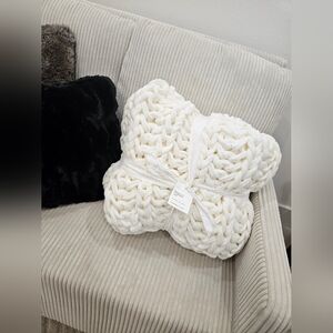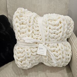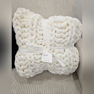 Cozy up with this luxurious colossal knit throw blanket. Its soft white color adds a touch of elegance to any room. Perfect for snuggling on the couch or adding texture to your bedding.
