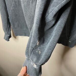 Has wearing and a stain on the sleeve as seen in photos, also lettering is a little worn with fraying
