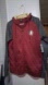 Stylish maroon zip-up sweater with gray sleeves. Features a comfortable fit and a sporty design.