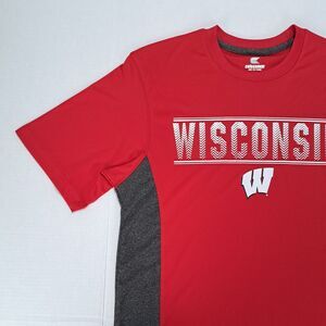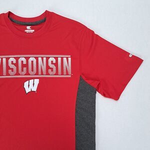 Colosseum UW Badgers Performance Shirt Mens S Red Grey Short Sleeve W Logo NCAA