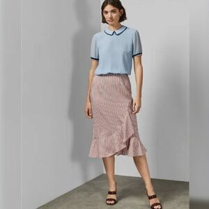 Color By Numbers by Ted Baker Coryn Pink Striped Asymmetric Midi Skirt.