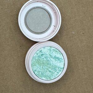 This shade is metallic white, light sage type green, metallic olivey shade of green, and silvery green shade. I have several other super shock shadow colors that look similar to this , and if I was to mix the shades they would look like this if I crumbled them together I could maybe make something close to this.