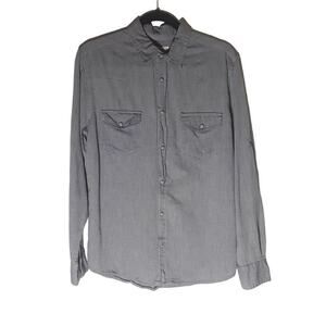 Colours Alexander Julian Men Shirt Medium Gray Casual Roll Tab Retro Streetwear