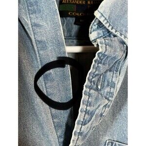 Colours by Alexander Julian 100% cotton denim cut-off sleeveless button-down shirt. Please see photos for mark on front right side and missing button.