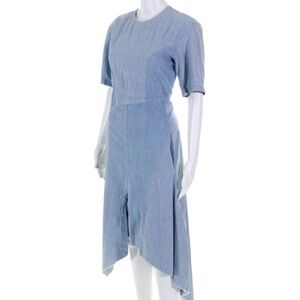 Colovos Chambray Seamed Midi Dress Size Small Light Blue Asymmetrical Hem