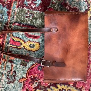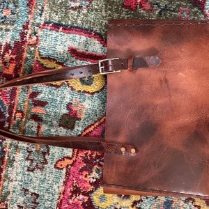 Glazed tan color with 1 leather divider. Does have tiny “AM” initials on front top corner. Link to new item: https://colsenkeane.com/products/no-714-tote-in-crazy-horse?variant=42120723890373. Has never been used.