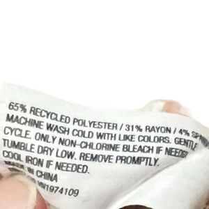 65% polyester, 31% rayon, and 4% spandex