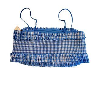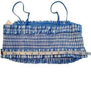 Colsie Blue Plaid Smocked Crop Top With Ruffle Trim Lightweight and breathable M