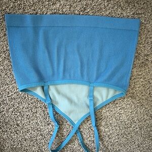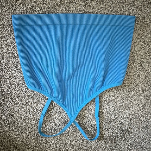 Stylish blue crop top. Ribbed texture. Perfect for casual wear.