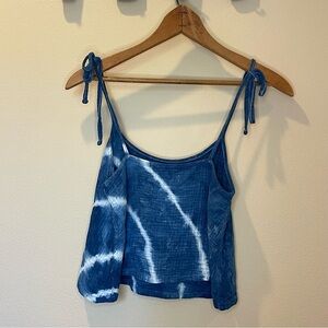 Colsie Blue & White Tie-Dye Cotton Shoulder Tie Flowy Tank Size XS