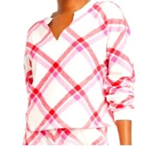 Colsie Cozy Plaid Sweatshirt Loungewear V Neck Long Sleeve Pullover Top Small