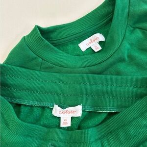 Vibrant green pajama set by Colsie. Includes long-sleeve top and shorts. Soft and comfortable for a restful night.